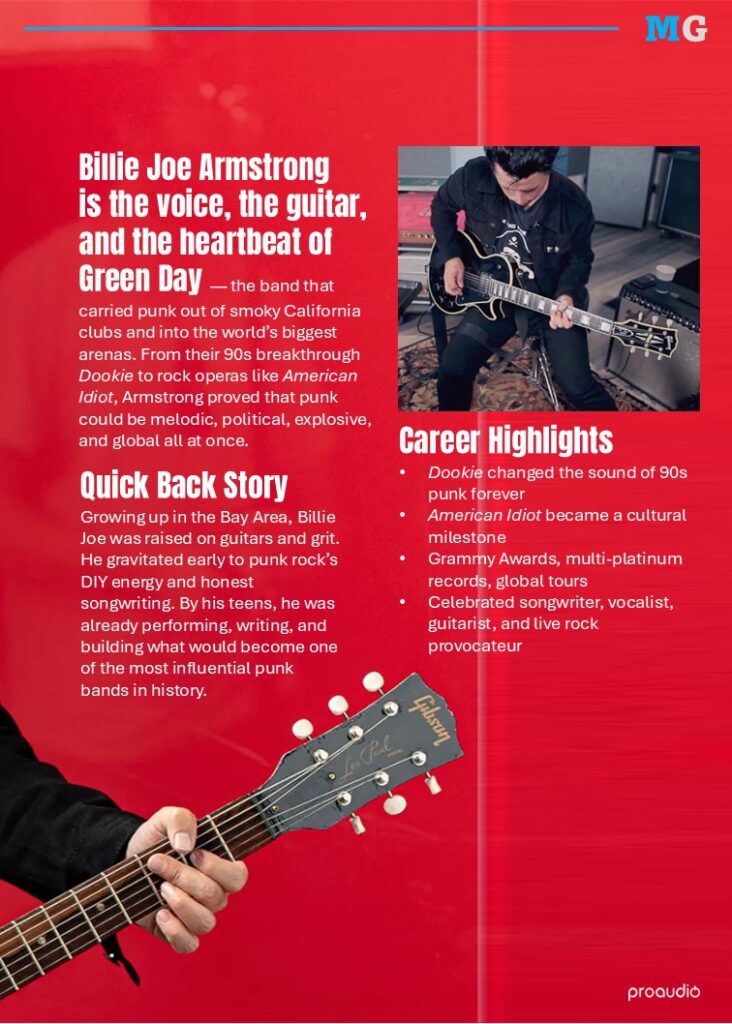 Visit Proaudio today and read more about Billie Joe Armstrong, iconic guitars, and the artists who shape modern music culture.