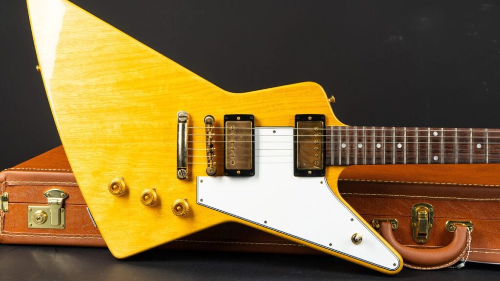 The original 1958 Explorer featured a radical, futuristic design. Though it was initially overlooked, it later became a favorite of rock and metal pioneers like James Hetfield of Metallica, The Edge, and Allen Collins.