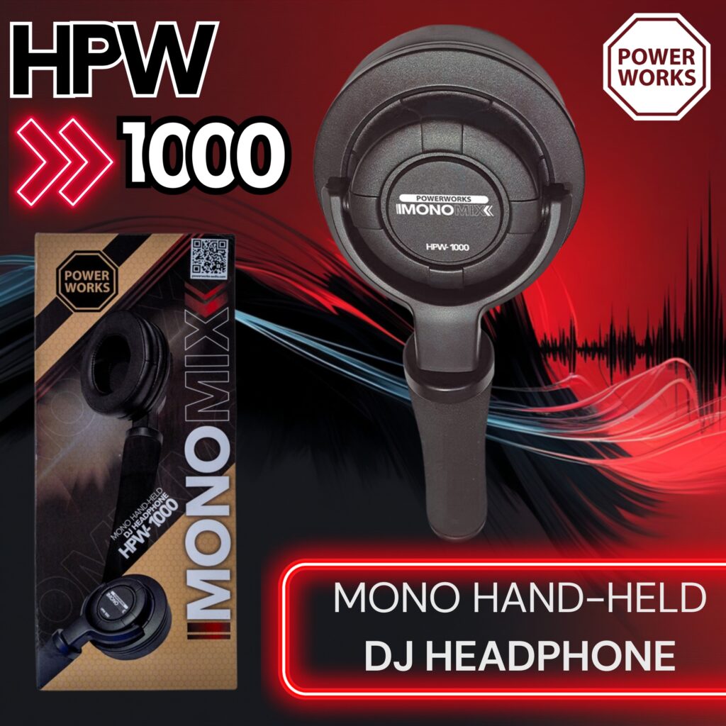 Discover the PowerWorks HPW-1000 Mono Hand-Held DJ Headphone, delivering clear monitoring, flexible handling, and reliable performance for DJs.