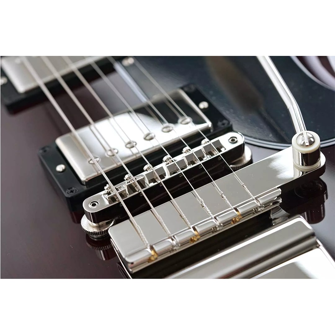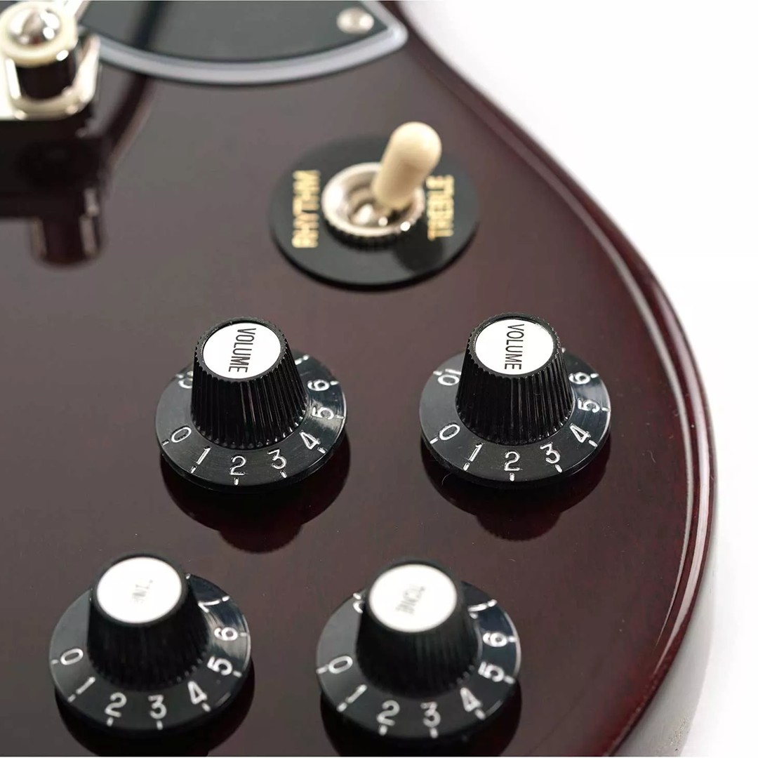 Hardware & Tremolo: Equipped with the Maestro Vibrola tremolo system, this SG allows smooth vibrato effects and subtle pitch modulation. The Lyre-engraved tailpiece adds a vintage visual touch while maintaining functionality. The ABR-1 Tune-O-Matic bridge provides stable intonation and adjustable string height, while Vintage Deluxe Keystone tuners ensure precise and reliable tuning. The Graphtech nut contributes to consistent string spacing and further enhances tuning stability.