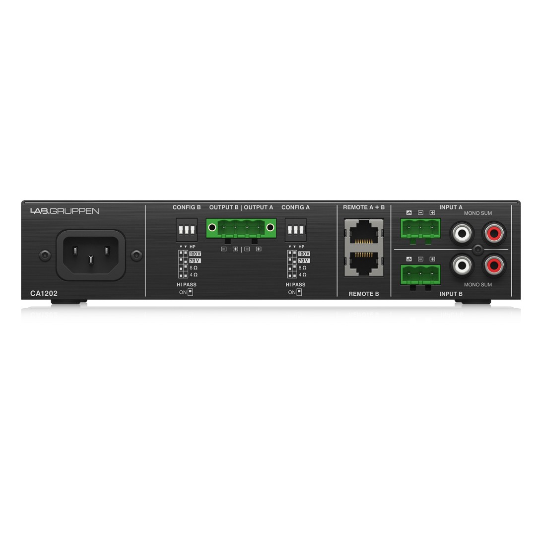 High-Efficiency Dual-Channel Power: The CA‑1202 delivers 2 × 120 W per channel, supporting both Low‑Z (4/8 Ω) and High‑Z (70/100 V) outputs. This flexibility allows it to drive a wide range of commercial loudspeakers, making it perfect for distributed audio in restaurants, hotels, retail spaces, and corporate environments.
