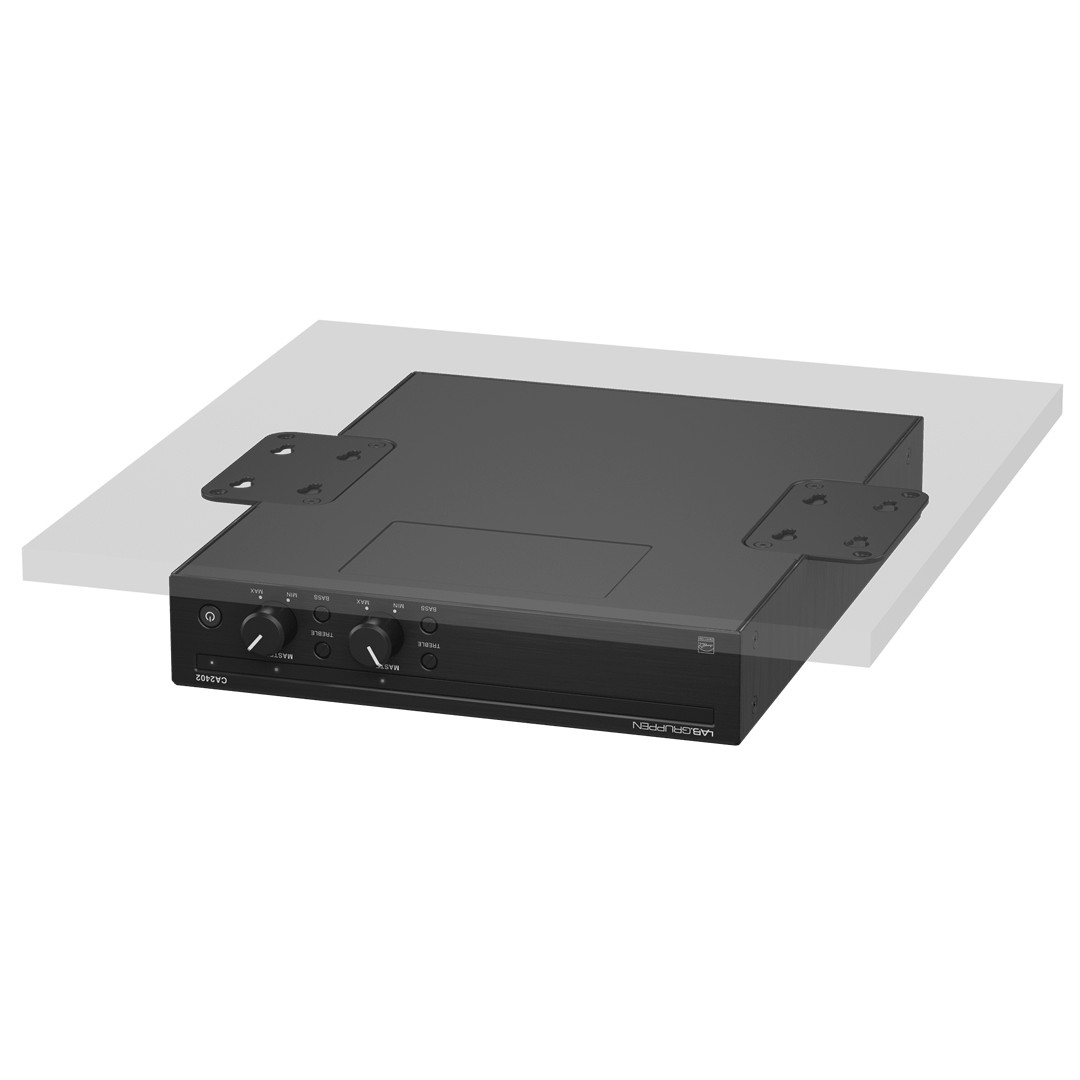 Easy Installation: The amplifier includes rubber feet for desktop use, optional rack mounting hardware for half or full rack enclosures, and brackets for wall or under-table mounting, offering maximum installation flexibility.