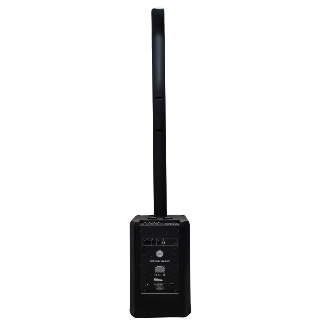 The PowerWorks MERCURY-12A PRO 12" Column Speaker System delivers 1000W RMS, 2000W peak, and 130dB SPL. Equipped with 12-inch woofer, compression drivers, and DSP modes, it provides clear, full-spectrum sound. Multiple connectivity options, lightweight design, and durable construction make it ideal for DJs, live performers, and event venues.