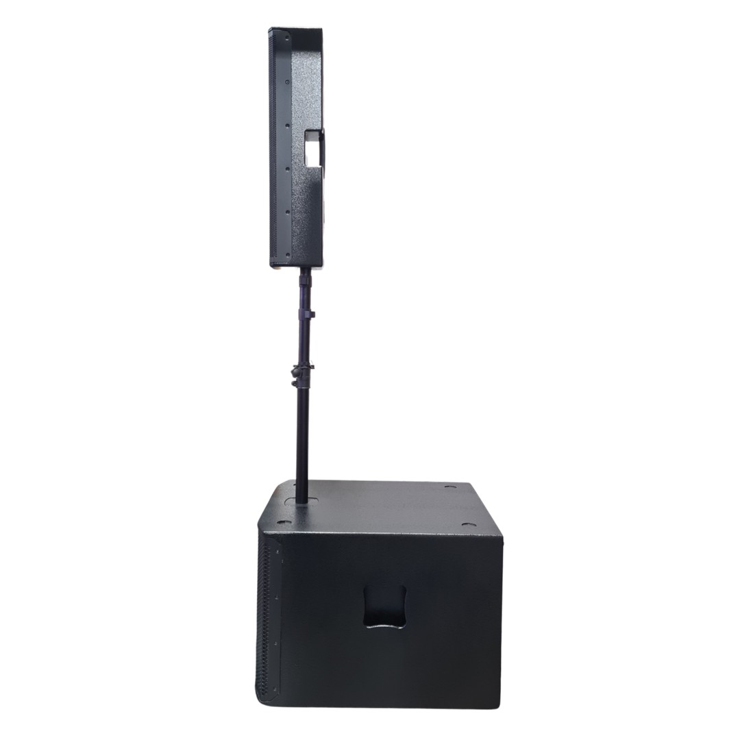 Enclosure and Build: Plywood cabinet with black metal grille, rubber feet, and durable black paint offers stability, protection, and professional aesthetics. Column and subwoofer are compact yet robust.